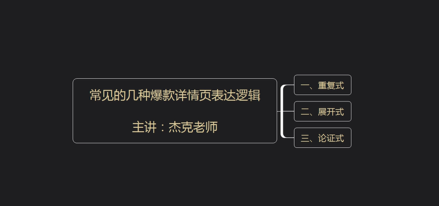 这集课程教大家如何做常见的几种爆款详情页表达逻辑,越简单的详情页成交越高。